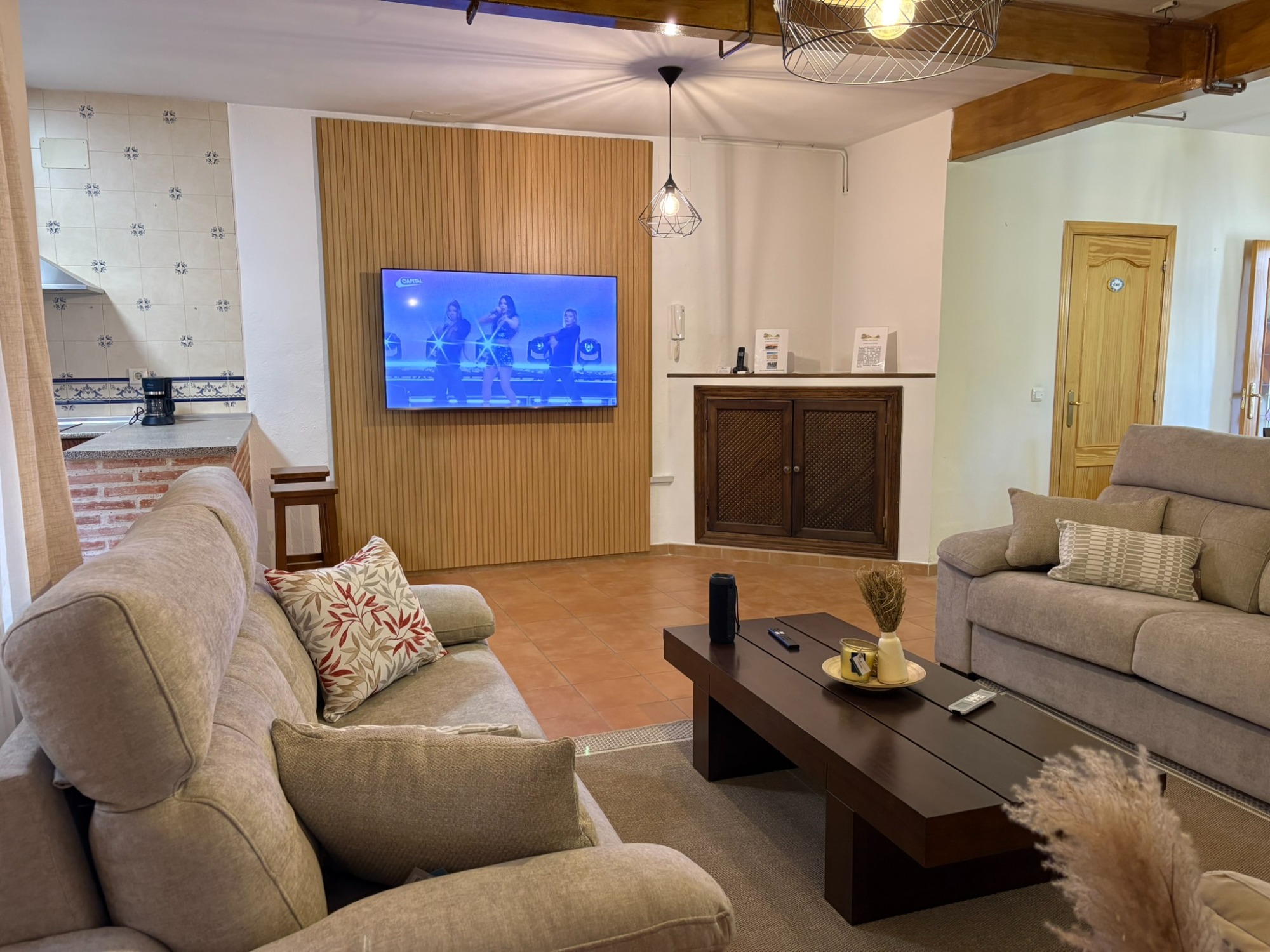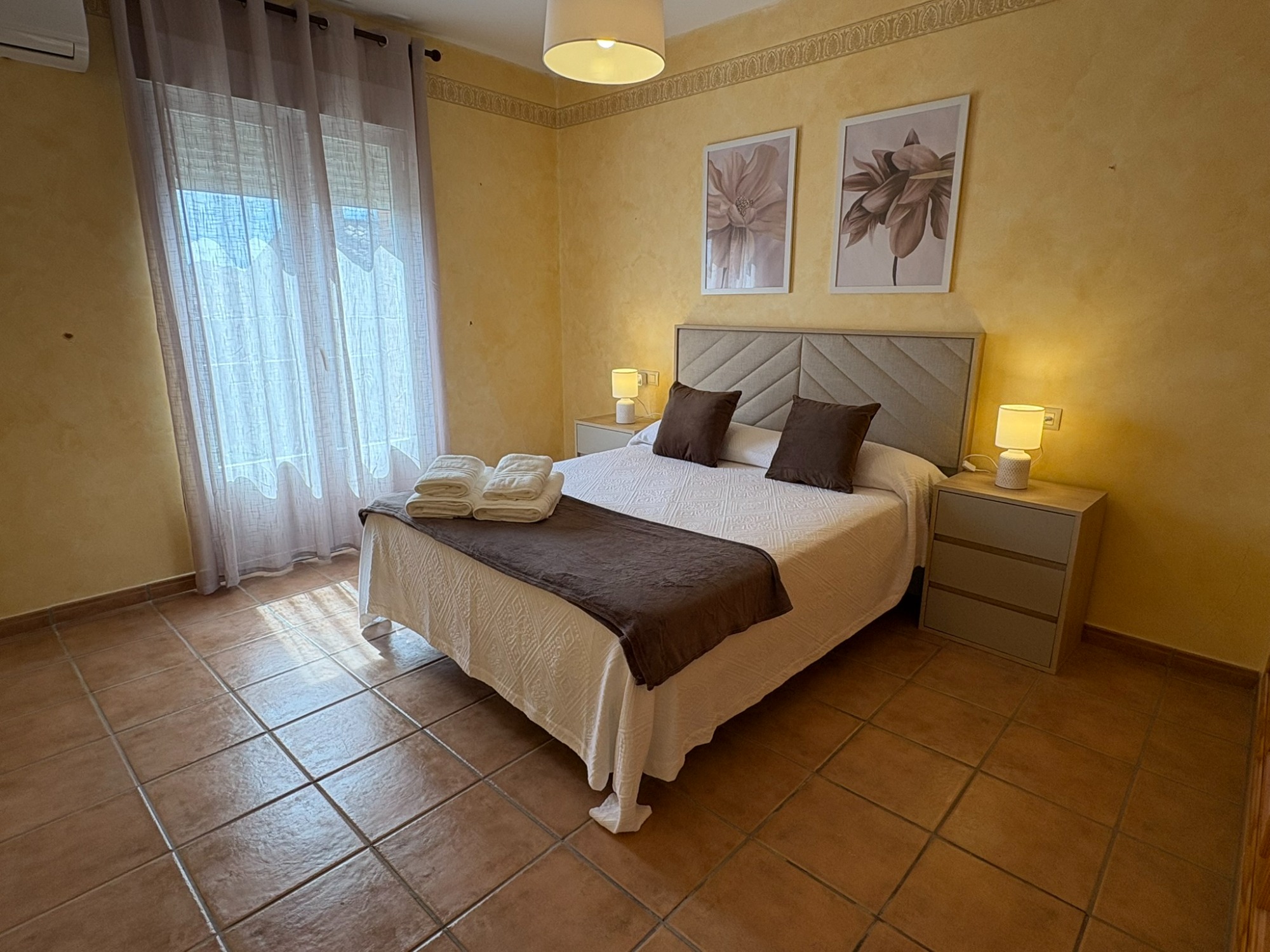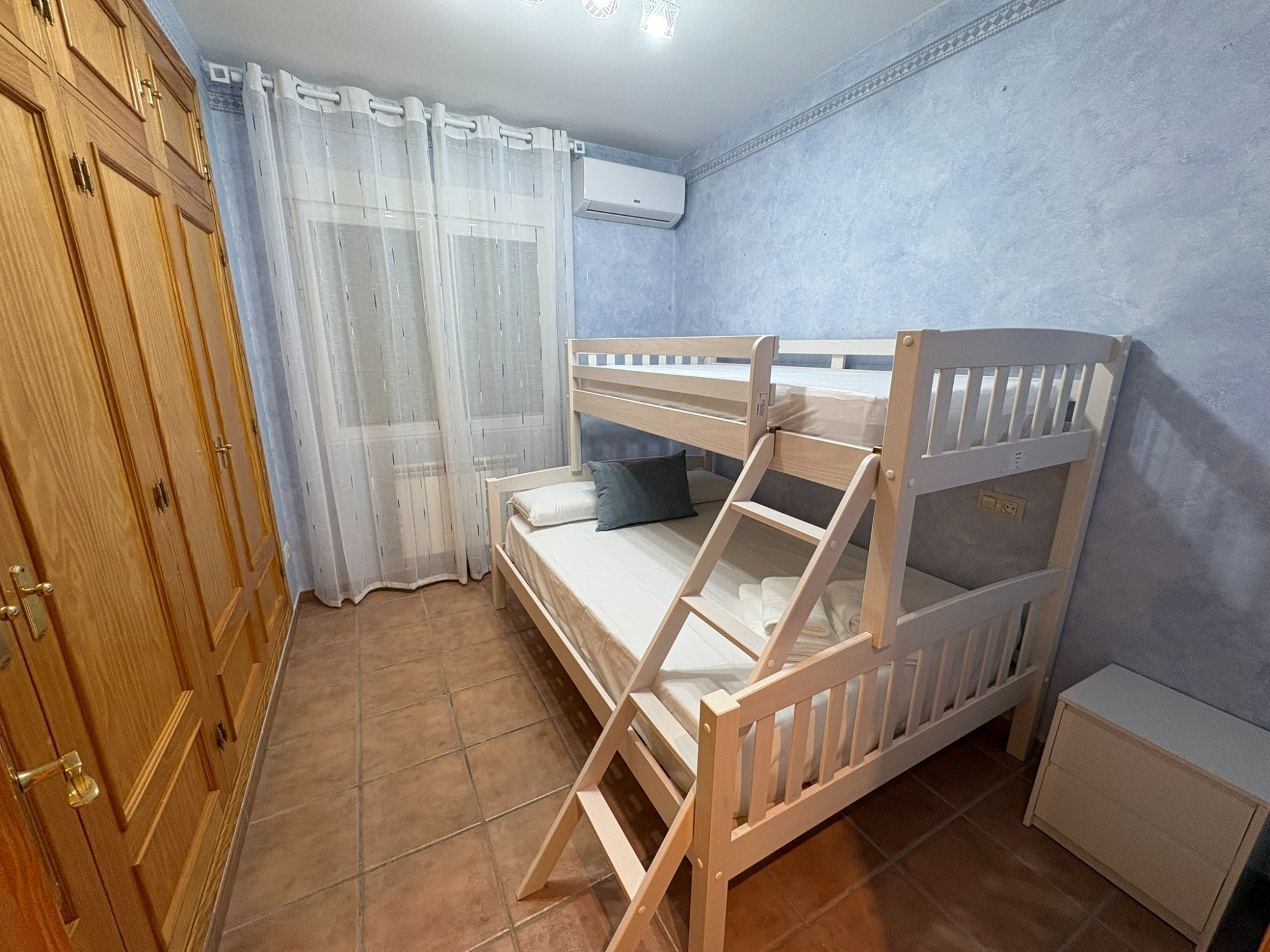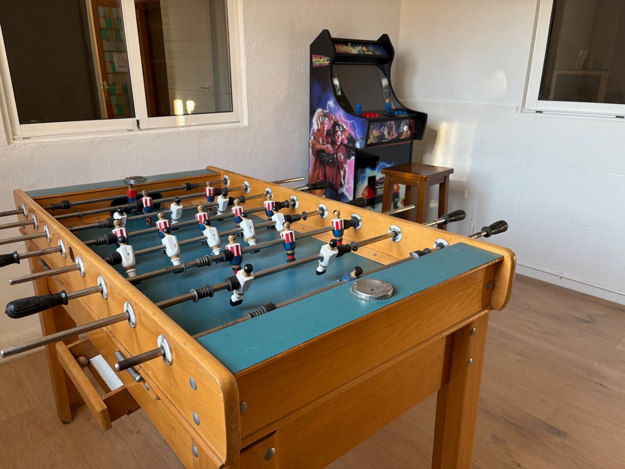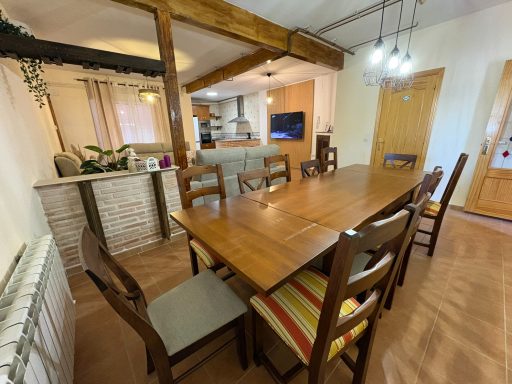 Es una vivienda exclusiva de 2 plantas y con parking privado. La planta de arriba tiene 3 dormitorios , 2 baños una cocina completa, terraza y un salón con sofá cama. La parte de abajo tiene 1 dormitorio para 2 personas, un gran saloón con sofá cama, televisión de 65" y una gran mesa para 12 comensales, 1 baño completo y una sala de juegos.